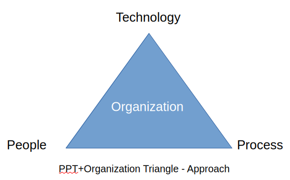– PPT Triangle (People, Process, Technology), including Organization as approach.