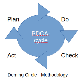 – PDCA-cycle (Plan-Do-Check-Act) aka Deming Circle as methodology;